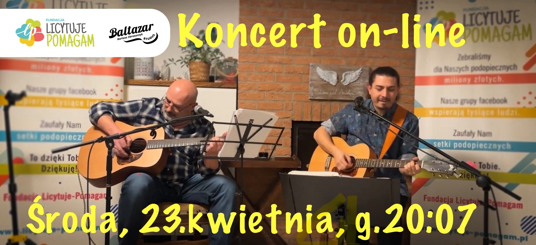 Fundacja Licytuje-Pomagam zaprasza na muzyczny wieczór on-line, w którym wystąpią rozśpiewany prezes Paweł Dżugan oraz zaprzyjaźniony wolontariusz Bartosz Baltazar Zbroszczyk
